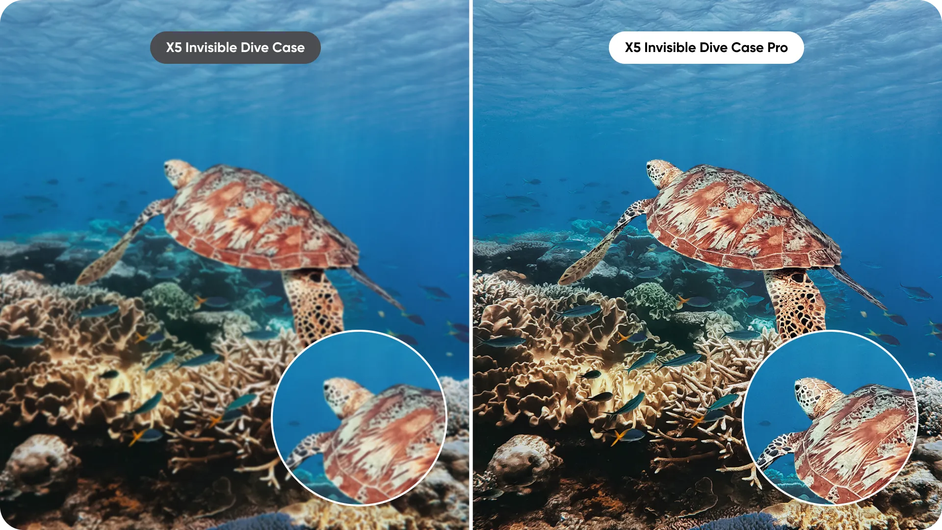 X5'inizi takın, dalın ve kristal netliğinde 360 derecelik görüntüler yakalayın. Özel kubbe tasarımı, ne kadar derine inerseniz inin bozulmayı ortadan kaldırır.