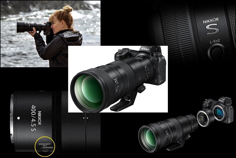 Nikon Z 400mm f/4.5 VR S Lens, Z Teleconverter TC-1.4x ile 560mm f/6.3 lens veya Z Teleconverter TC-2.0x ile 800mm f/9 lens olur.